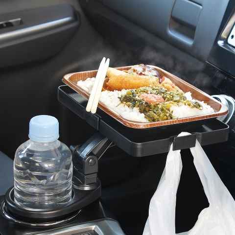- Простой и удобный столик для приема пищи в припаркованном автомобиле.