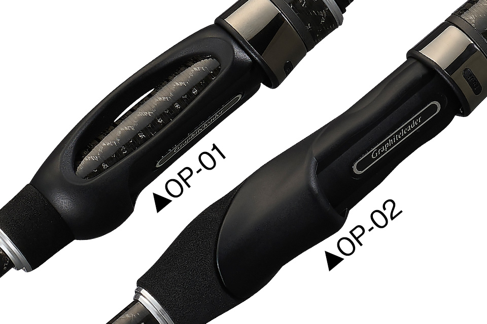 All models are equipped with a high-sensitivity original carbon reel seat. The 6102L-HS+ and 7102ML-HS+ use the OP-02 for a secure grip, while the other models feature the slim, compact OP-01 in a down-lock configuration.