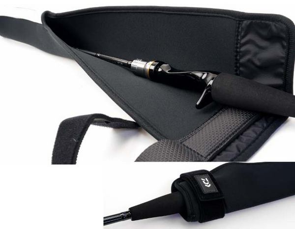 This rod cover features cushioning material to protect the top section of your rod from scratches and other damage. It can cover approximately 4-5 sets of rods with reels attached (such as bass rods). It includes a securing strap to keep the rods together.