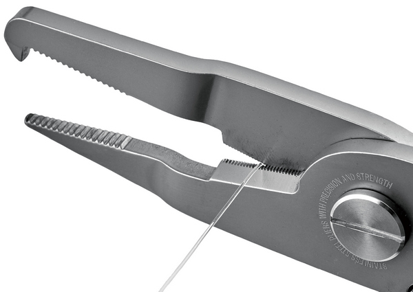 - Serrated blade for smooth cutting of PE line and thick leader lines.