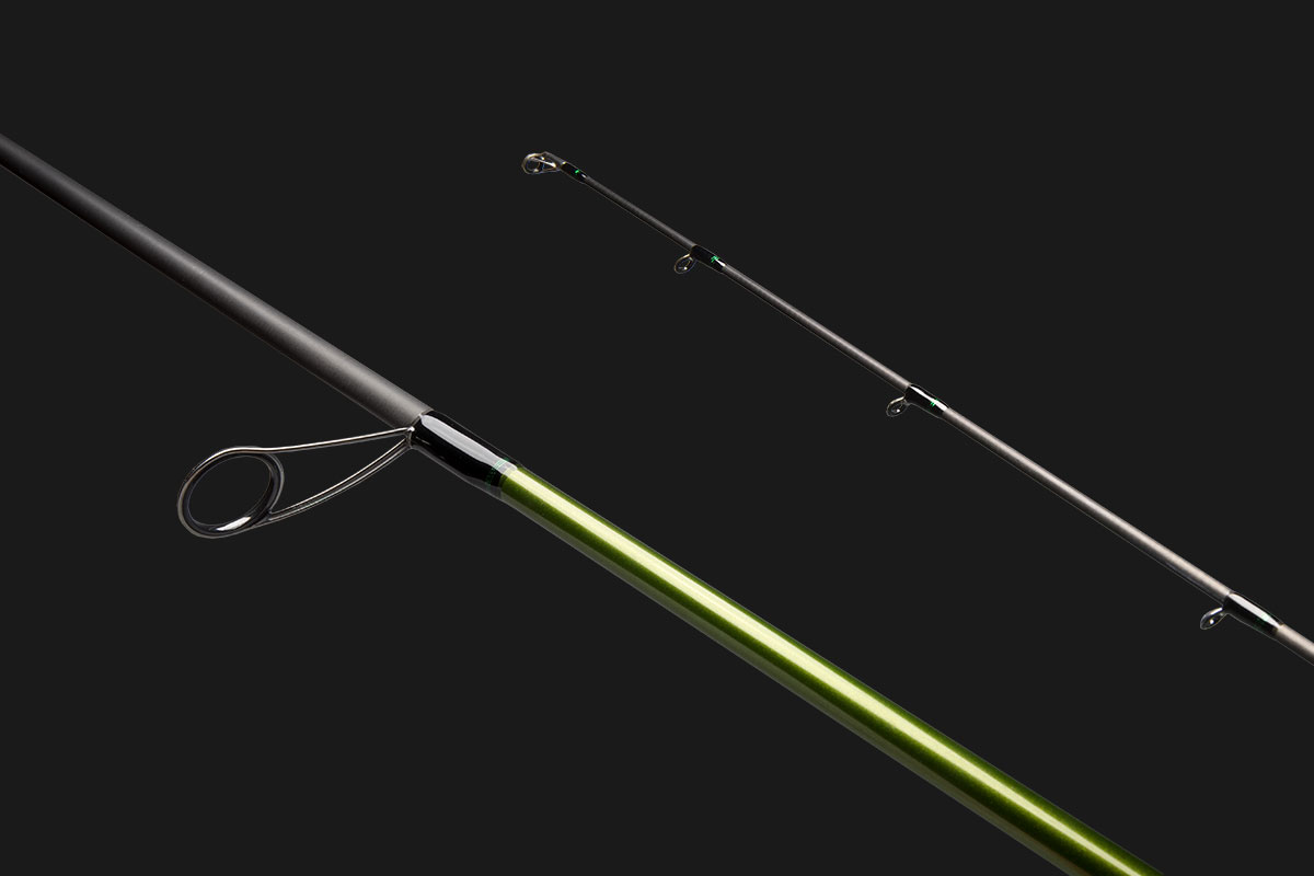 Guides feature lightweight titanium frames, with single-foot guides used on the tip section to fully harness the blank’s power.