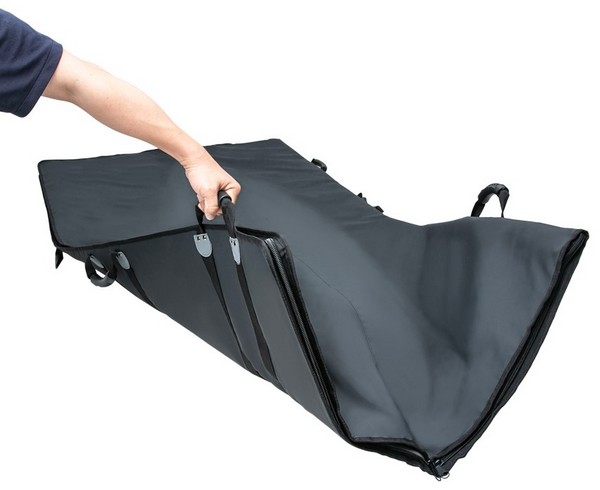 This is a simple cooler bag for temporarily storing large migratory fish such as tuna. The exterior and interior are made of durable tarpaulin fabric. Cushioning material is built into the middle. With a total of eight handles on both sides, it can be carried by multiple people.